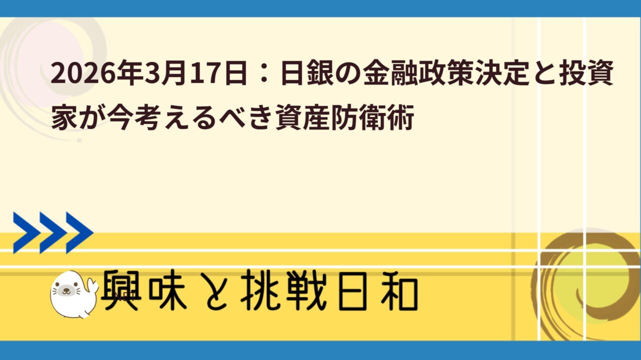 2026年3月17日:日銀の金融政策決定と投資家が今考えるべき資産防衛術