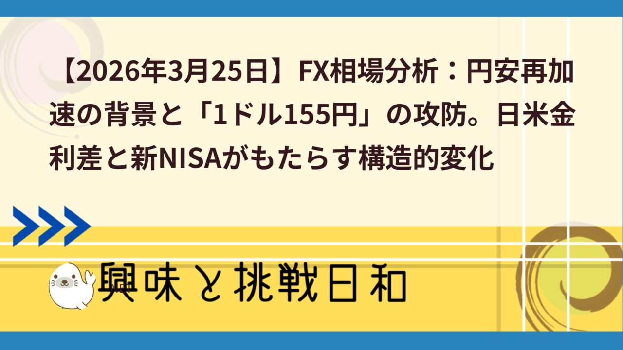 【2026年3月25日】FX相場分析:円安再加速の背景と「1ドル155円」の攻防。日米金利差と新NISAがもたらす構造的変化