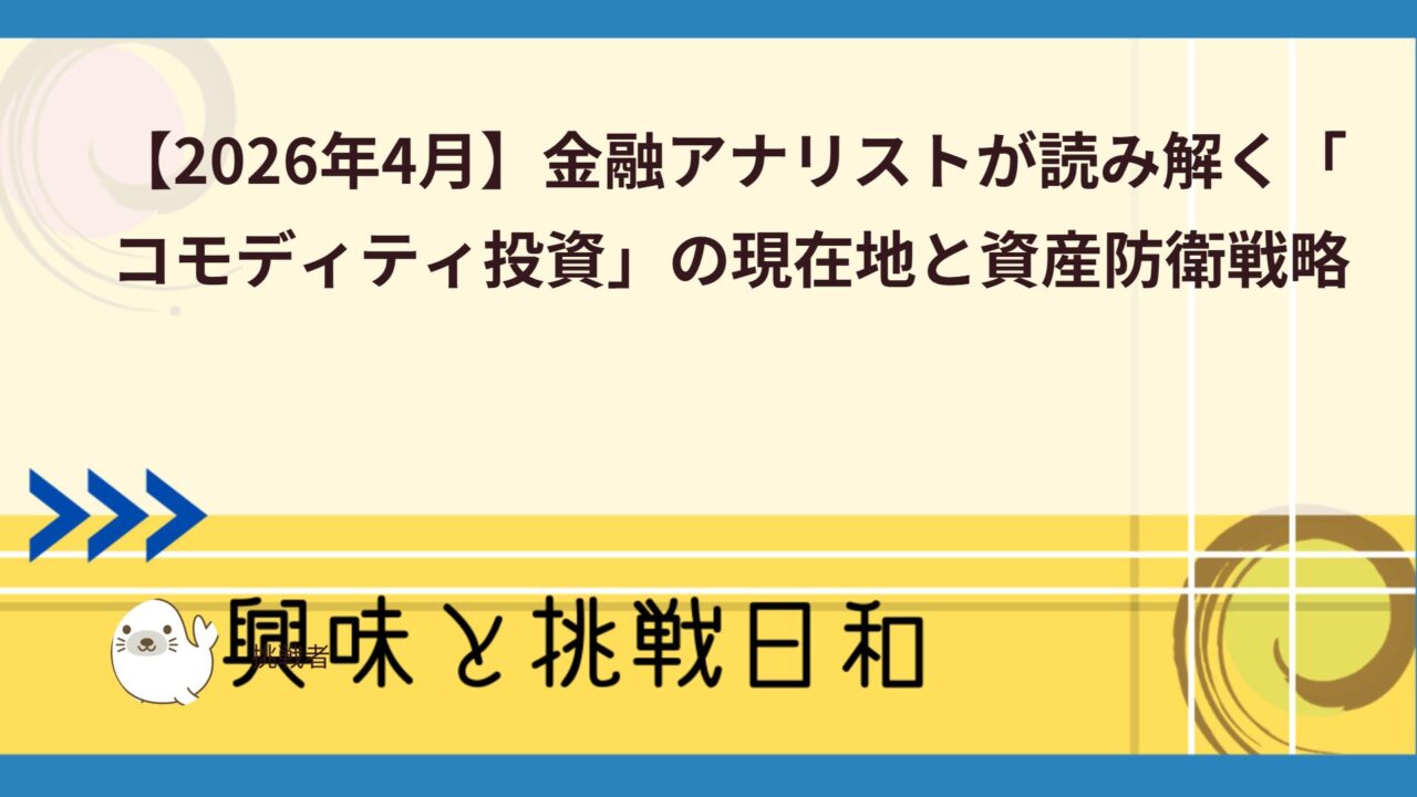 【2026年4月】金融アナリストが読み解く「コモディティ投資」の現在地と資産防衛戦略