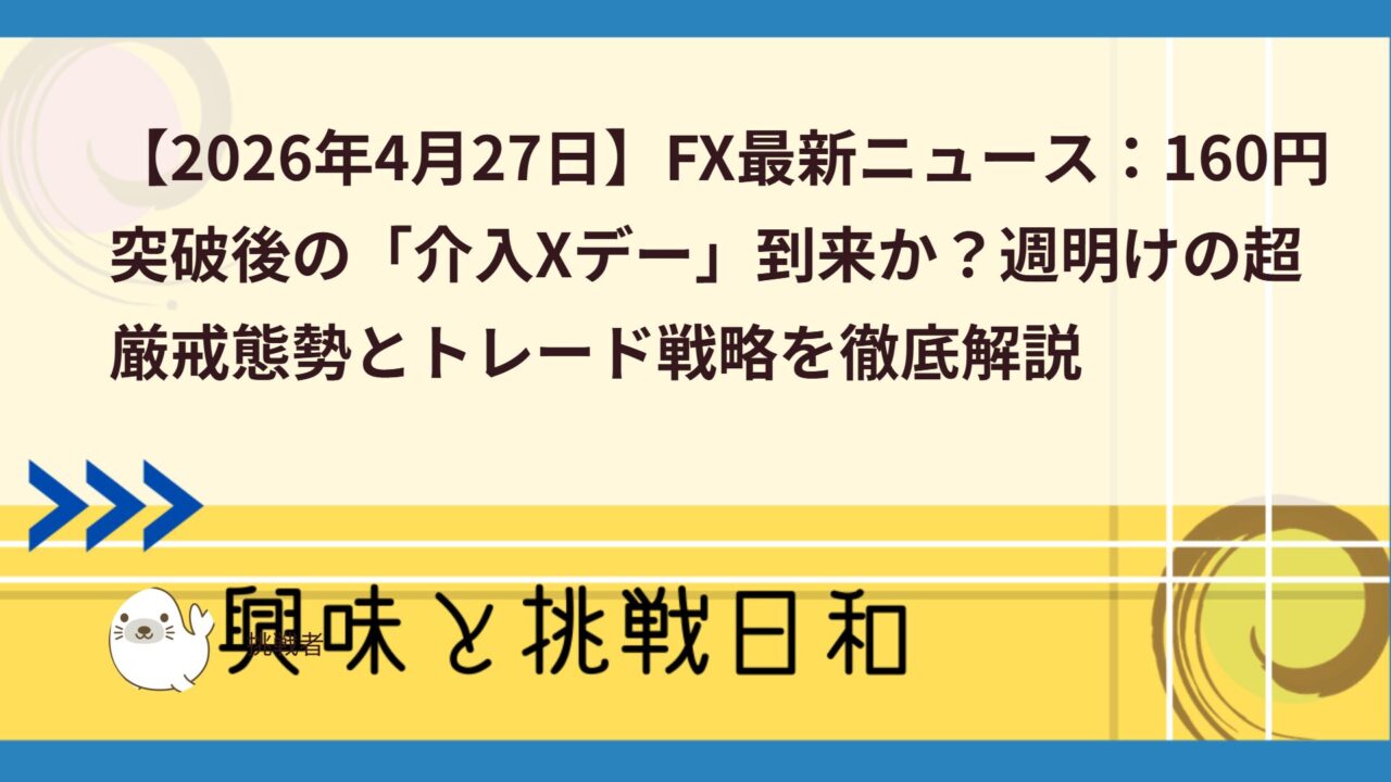 2026年4月27日(月曜日)、東京為替市場は、先週末にドル円が一時1ドル=160.20円付近という、約36年ぶりの円安水準を記録した衝撃をそのままに、極めて高い緊張感の中で取引が再開されました。市場の関心は「政府・日銀による実弾介入がいつ発動されるのか」という1点に集約されています。